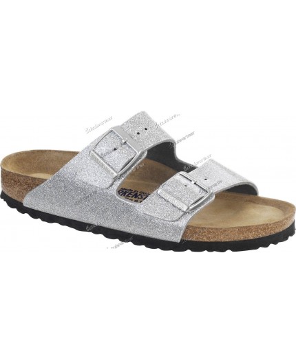 Birkenstock`s für schmale und normale Füße Obermaterial: Leder mit Metallic-Effekt Fussbett: Naturkork/echt Leder mit Weichbettung Sohle:...