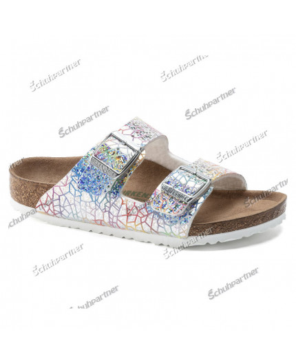 Birkenstock`s für schmale Füße Obermaterial: Leder mit Metallic-Effekt Fussbett: Naturkork/echt Leder mit Weichbettung Sohle: EVA